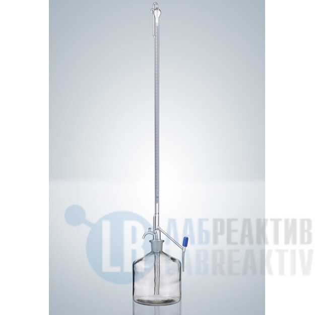 Аппарат для титрования Пеллета, класс AS, DURAN®, синяя градуировка, сертифицированное соответствие, с указанием даты партии, полосы Шелбаха для повышенной читаемости, градуированные отметки, боковой PTFE кран, без бутыли для хранения из прозрачного стекла емкостью 2000 мл, DIN EN ISO 385.