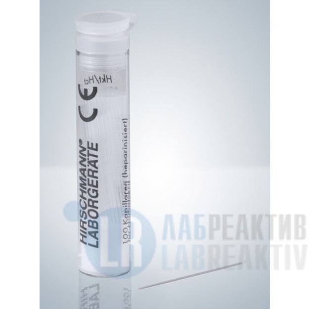 Капилляры с микрогематокритом, гепаринизированные натрием, в дозаторе, с номером партии на упаковке, с маркировкой: годны к использованию до, CE согласно IVD 98/79 EC.