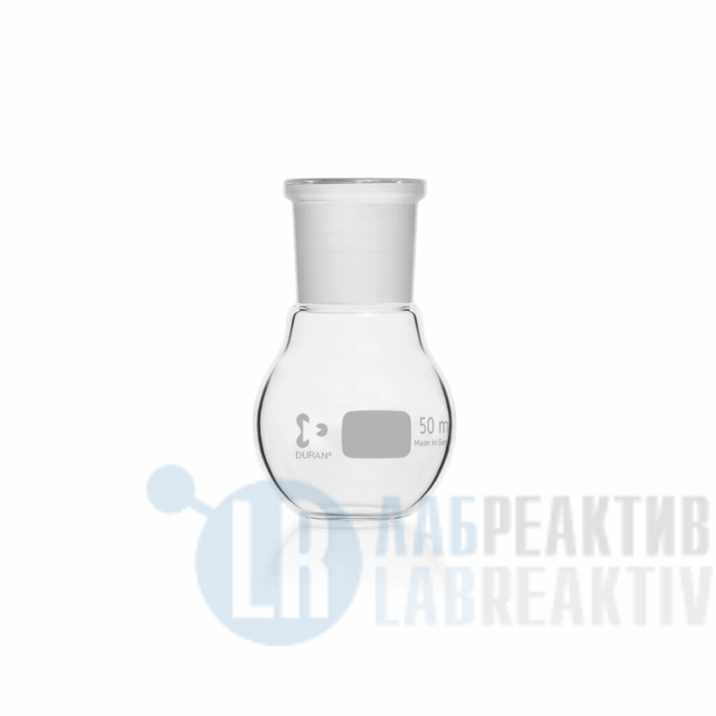 Плоскодонные колбы по форме аналогичны круглодонным колбам, но имеют уплощенное дно, что позволяет им стоять вертикально, не требуя использования опорного кольца. Стандартное шлифованное соединение обеспечивает точное соединение с другими компонентами шлифованного соединения, такими как холодильники, адаптеры и т. д. Из-за своей формы плоскодонные колбы не подходят для использования ни при положительном, ни при отрицательном давлении.