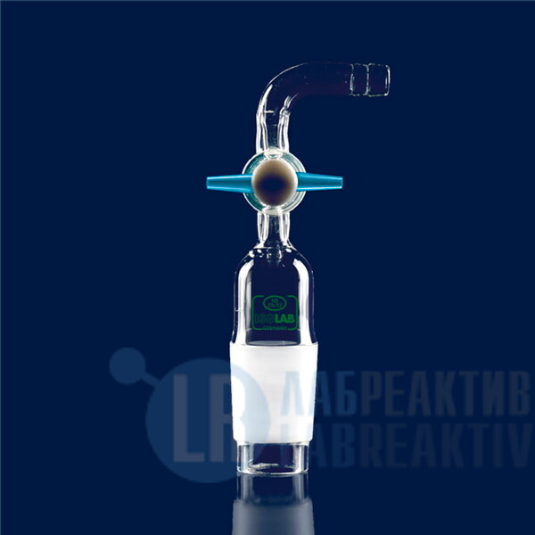 Адаптер для шлангов ISOLAB угловой, керн NS14/23, кран PTFE, стекло