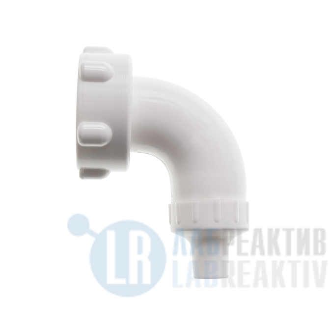 Патрубок изогнутый, 90°, с колпачковой гайкой, внутренняя резьба и редукционный патрубок, из ПП.