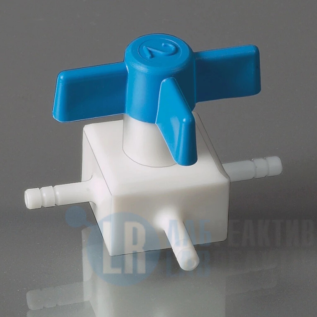 Двухходовые / трехходовые клапаны изготовлены из цельного ПТФЭ и снабжены патрубками для присоединения трубок. Химически стойкие. Кроме того, за счет низкого коэффициента трения, трубки легко соединяются с патрубками клапана. Синие ручки из ПП.