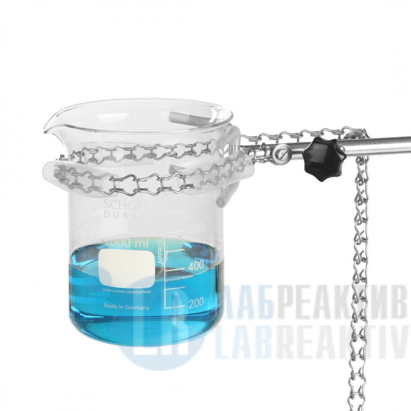 Зажим штативный для стаканов, с цепью, из стали. Силиконовое покрытие на захватах и цепи. Цепь 70 см.