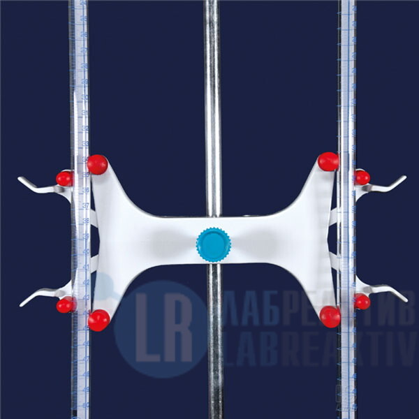 Зажим ISOLAB изготовлен из стали и предназначен для крепления двух прямых бюреток одновременно. Уникальный дизайн гарантирует надежное крепление бюреток и обеспечивает непрерывное и легкое наблюдение за шкалой объема и уровнем мениска под любым углом. Зажим можно устанавливать на штангу штатива диаметром от 10 мм до 12 мм. Фиксирующая головка с гибкими пружинами позволяет легко вставлять и извлекать бюретки.