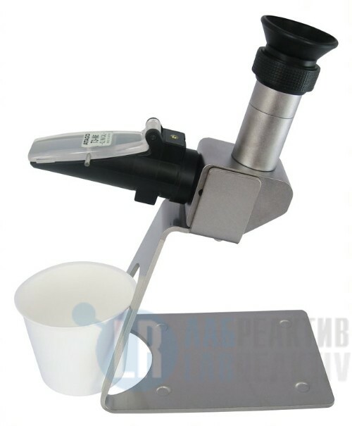Это настольный оптический рефрактометр, который имеет три шкалы и предназначен для измерения сывороточного белка в крови, плотности мочи и коэффициента преломления. Очень удобный в работе прибор благодаря своему исполнению, при котором руки остаются свободными.