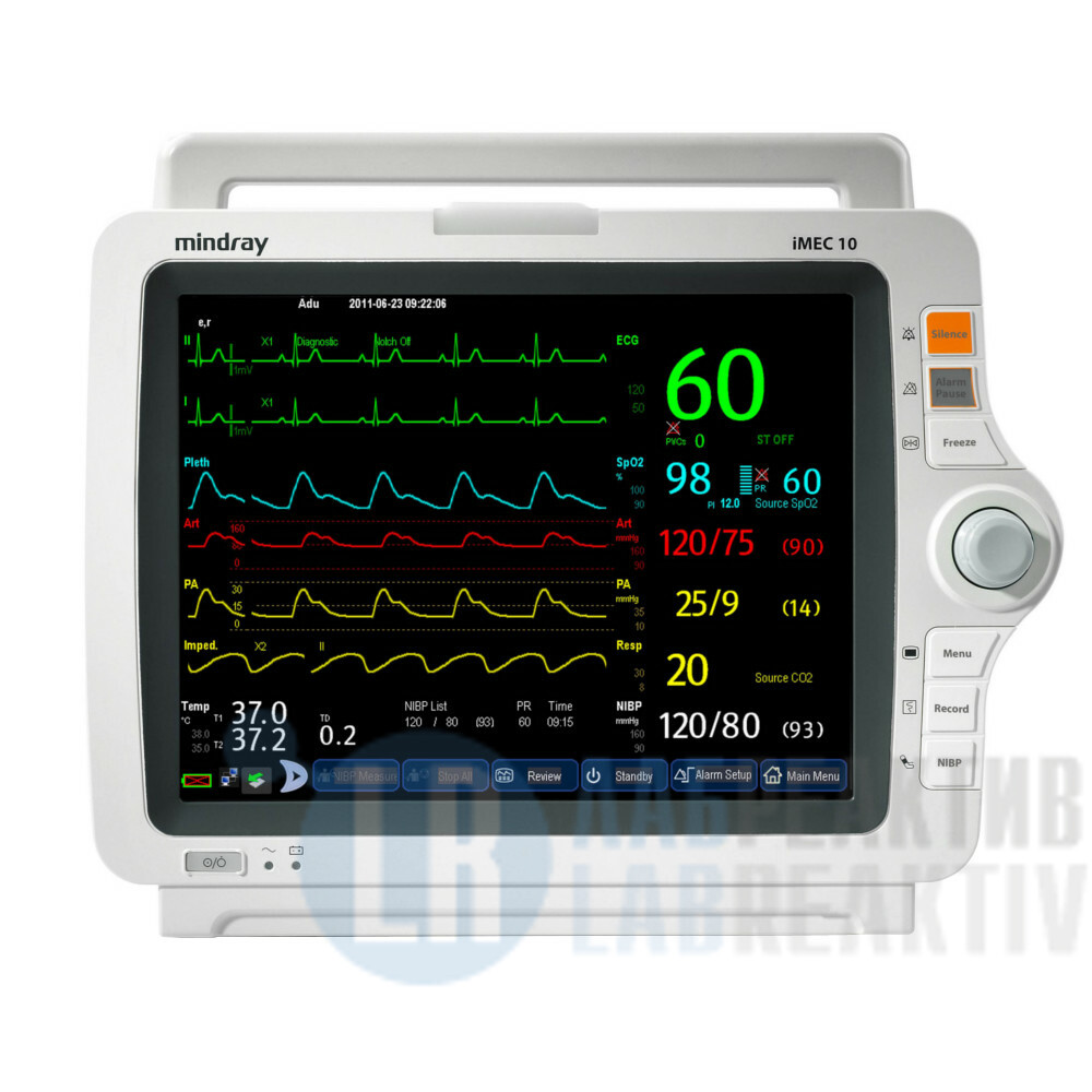 Mindray iMec 10 — это один из самых узнаваемых мониторов пациента на нашем рынке. Своеобразный стандарт качества в своем сегменте наряду с iMec 8. Весит менее 4кг, потребляет в 2 раза меньше энергии, чем аналогичные аппараты у конкурентов. Диагональ составляет 10,4 дюйма. Присутствует несколько параметров измерения. Отображает до 8 кривых. Время работы в автономном режиме составляет 4 часа.