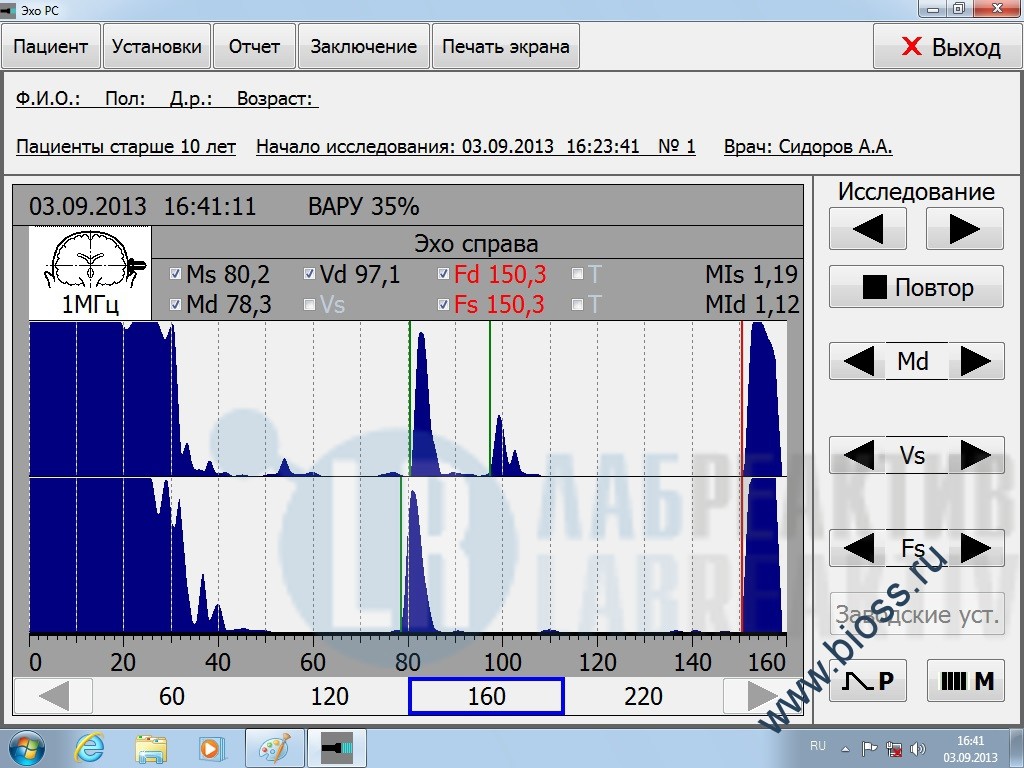 - Сохранение списков пациентов, результатов обследования и эхограмм