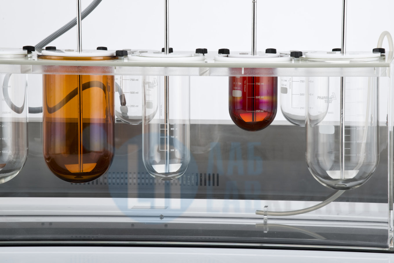 - Тестер растворения PTWS 4000 имеет два вспомогательных сосуда для стандарта или для пополнения сосудов после отбора проб;