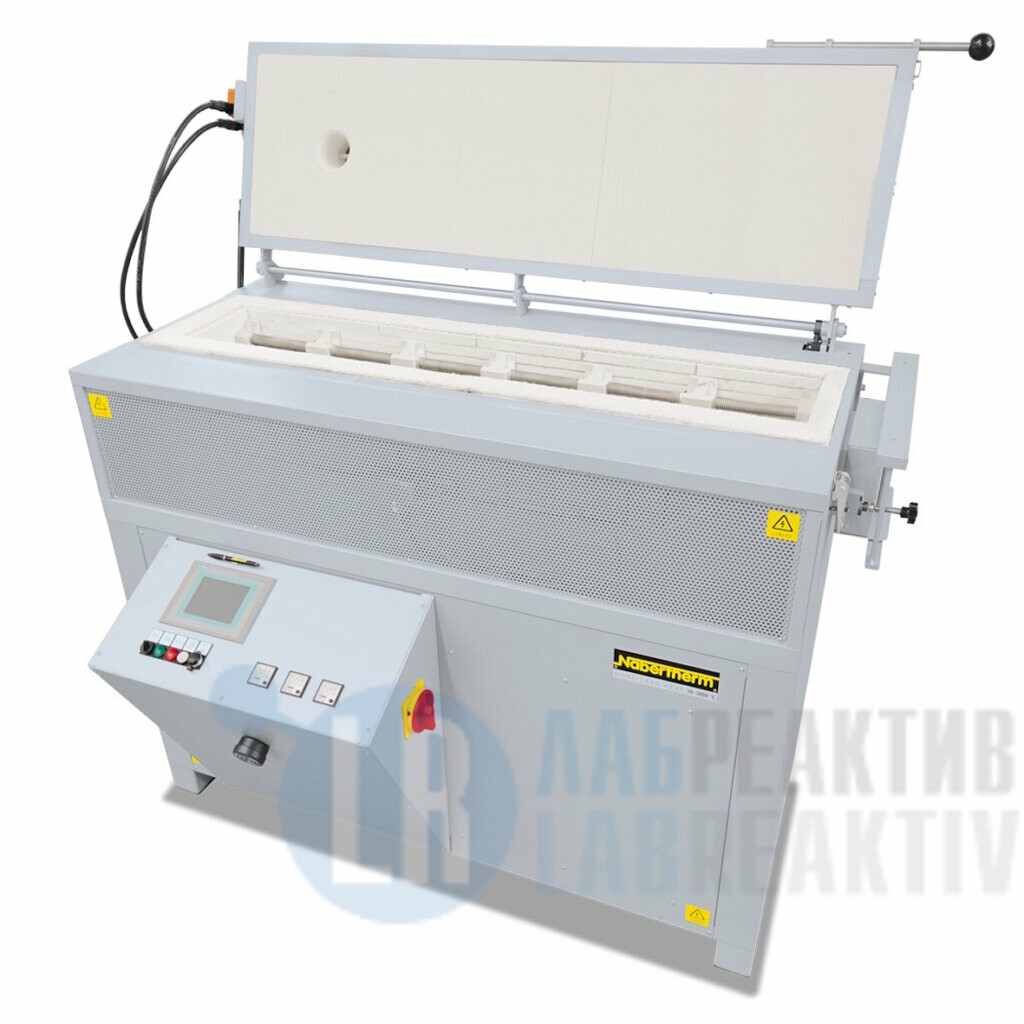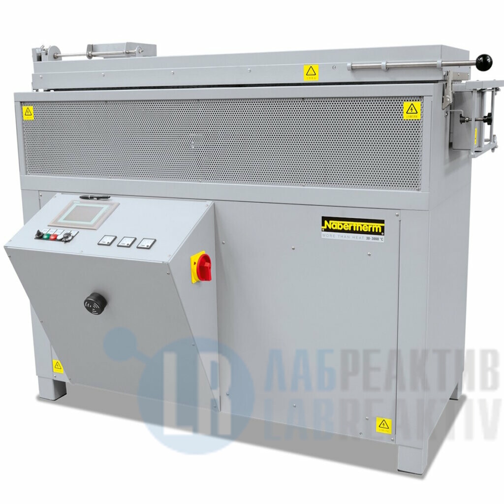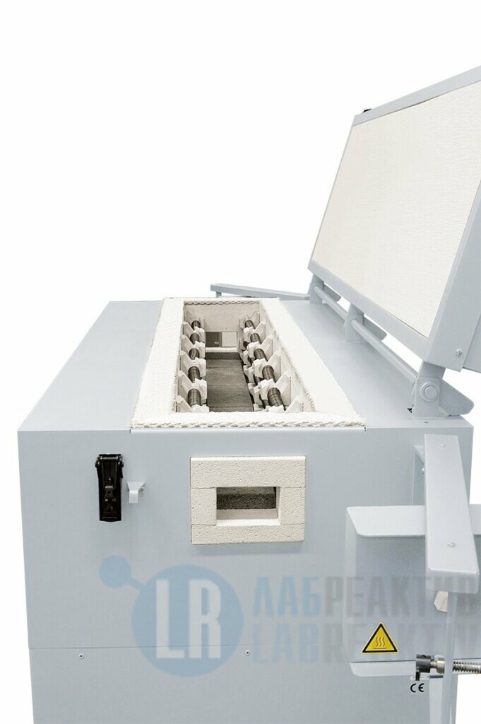 Пространство градиентной печи GR 1300/13 разделено на шесть равных зон управления. В каждой из шести зон нагревания можно устанавливать нужную температуру. Загрузка градиентной печи производится через параллельную поворотную дверь, расположенную на боковой стороне. Для нагреваемого пространства длиной 1300 мм может стабильно поддерживаться максимальный температурный градиент 400°C. По желанию печь можно использовать как протяжную печь, если она оснащена второй дверью на противоположной стороне. При использовании входящих в комплект поставки систем отделения волокон загрузка производится сверху, через открытую крышку.