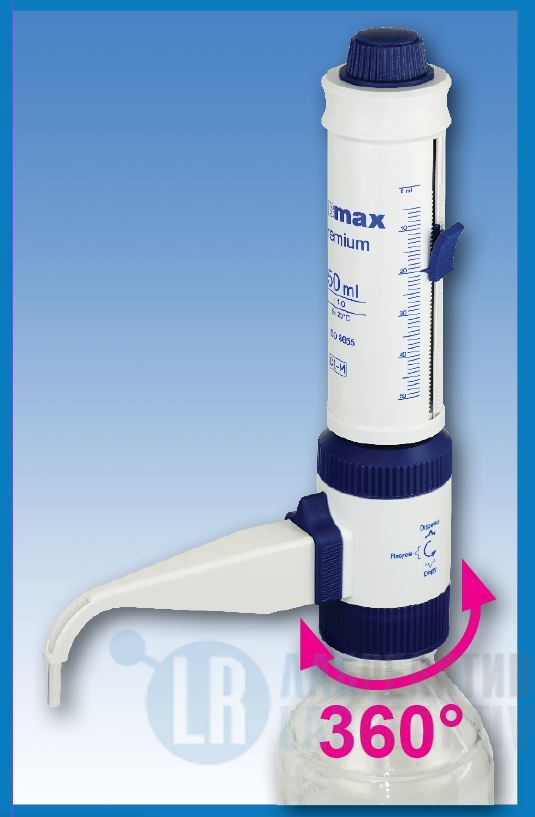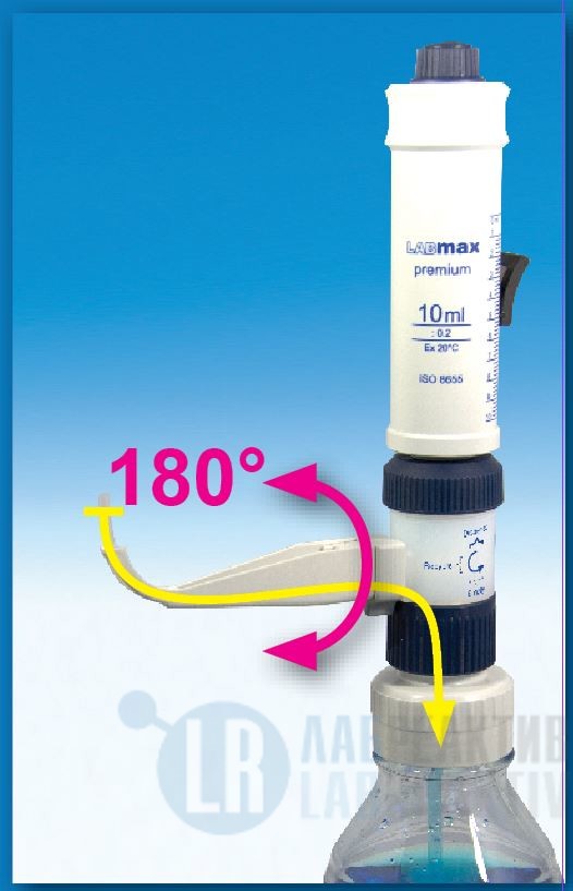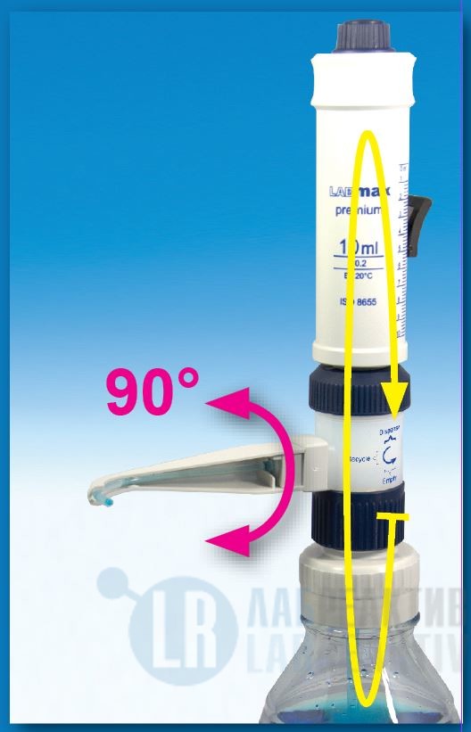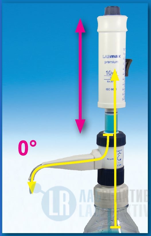 Легкое и стойкое к усталости дозирование: переведите разрядную трубку в режим дозирования и наслаждайтесь дозированием с LABMAX премиум. Поршень LABMAX premium полностью разряжает реагент с каждым ходом. Раздаточный стеклянный цилиндр защищен прозрачным пластиковым покрытием, которое позволяет пользователю видеть жидкость в стеклянном цилиндре. Защитное покрытие также снижает риск поломки!