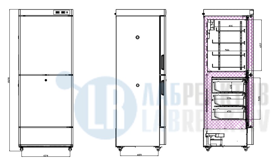 Система контроля температуры этой комбинации холодильник-морозильник может отображать влажность и температуру независимо друг от друга. Этот холодильник-морозильник медицинского класса позволяет установить верхнюю температуру в диапазоне от 2°С ~ 8°С и более низкую температуру в диапазоне от -10°С ~-25°С.