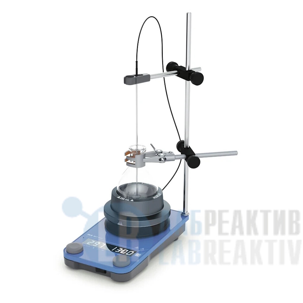 Насадка для синтеза, изготовленная из прочного анодированного алюминия, выдерживает температуру до 300°C. В качестве опции может быть установлен дополнительный штатив для надежного крепления обратного конденсатора. Достаточно вставить стержень во второе гнездо мешалки RCT basic.