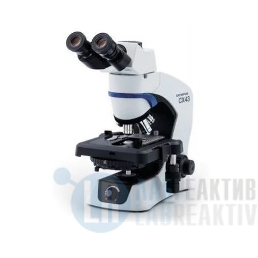 Лабораторный биологический прямой микроскоп OLYMPUS CX43. Современный эргономичный дизайн с низким расположением предметного столика, не вызывающий усталость при длительной работе. Реализация методов: светлое и темное поле, фазовый контраст, простая поляризация и флуоресценция. Установка лимита перемещения для быстрого возврата в фокусную плоскость. Конденсор с метками оптимального положения апертурной диафрагмы для разных объективов и с турелью для вставок различных методов контрастирования. Общее увеличение микроскопа 40x 100x 400x 1000x, возможность доукомплектации объективами и окулярами.