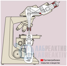 Плесень опасна для микроскопа, так как она может разрастаться на внутренних поверхностях оптики микроскопа и испортить рабочие характеристики. В микроскопе ECLIPSE E200 предусмотрена специальная защита в виде противогрибкового покрытия: внутри микроскопа в самых опасных местах помещено противогрибковое вещество. Испытания показали, что на моделях, обработанных противогрибковым покрытием, плесень не образовывалась в течение трех лет при средней температуре 30°C и относительной влажности 80%.