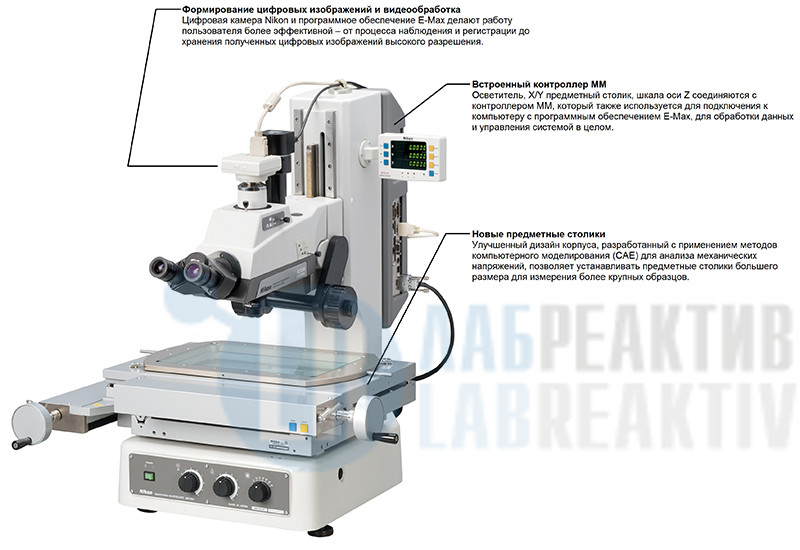 — Повышенная прочность станины предоставляет возможность устанавливать предметные столики большего размера и производить измерение более крупных образцов.
