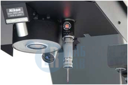 Помимо стандартной визуальной автофокусировки дополнительно может использоваться высокоскоростная лазерная автофокусировка, которая обеспечивает большое рабочее расстояние 63 мм. Для лазерной автофокусировки в VMA-4540 применяется бесконтактный датчик, который использует красный полупроводниковый лазер и позволяет измерять высоту с субмикронным разрешением. Лазерная автофокусировка обеспечивает быструю и высокоточную фокусировку на поверхности исследуемого объекта независимо от оптического увеличения, делая измерения высоты образца предельно простыми.