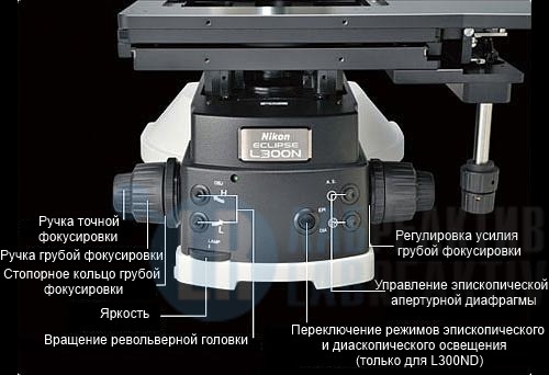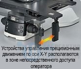 - Все устройства управления располагаются рядом друг с другом, что облегчает перемещение предметного стола и выполнение фокусировки.