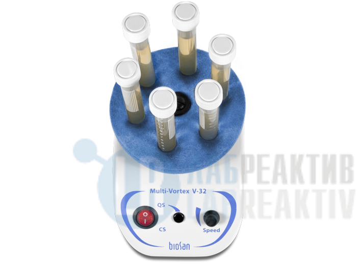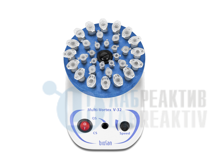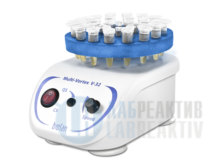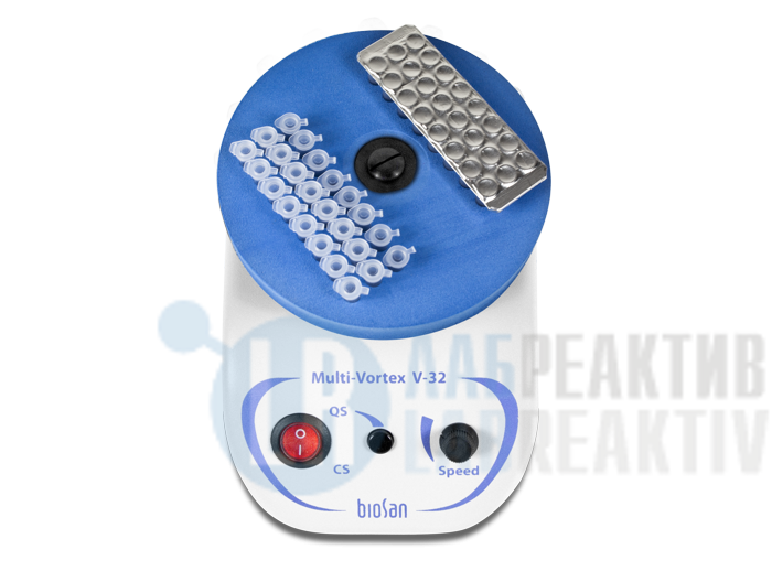 Мульти-вортекс V-32 предназначен для интенсивного перемешивания. V-32, в отличие от V-1, позволяет перемешивать одновременно до 32 пробирок.
