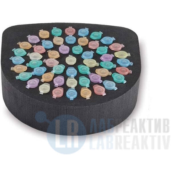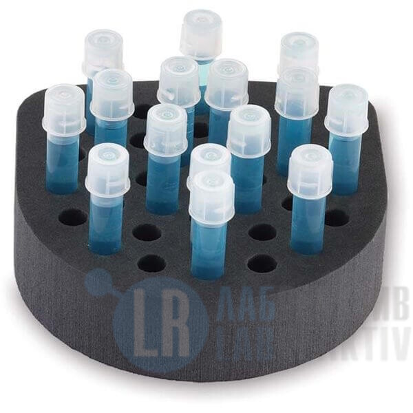 Универсальный держатель, вставка из вспененной пластмассы для 38 микропробирок объемом от 1,5 до 2 мл, универсальная крышка и платформа с выемкой (прилагается)