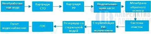 Композитный фильтрующий с мембраной из ПЭС импортного производства. Для сохранения асептических свойств воды используется, фильтрующий элемент с мембраной из ПЭС и коагулянт полиоксихлорид алюминия.
