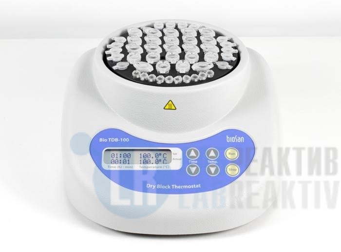 Bio TDB-100 — компактный, удобный в управлении твердотельный термостат, специально разработанный для длительных инкубаций при различных температурах. Универсальный встроенный алюминиевый блок имеет гнезда для 3–х наиболее распространенных типов пробирок Эппендорф. По желанию заказчика возможно изготовление специализированных блоков для различных типов пробирок и планшетов.
