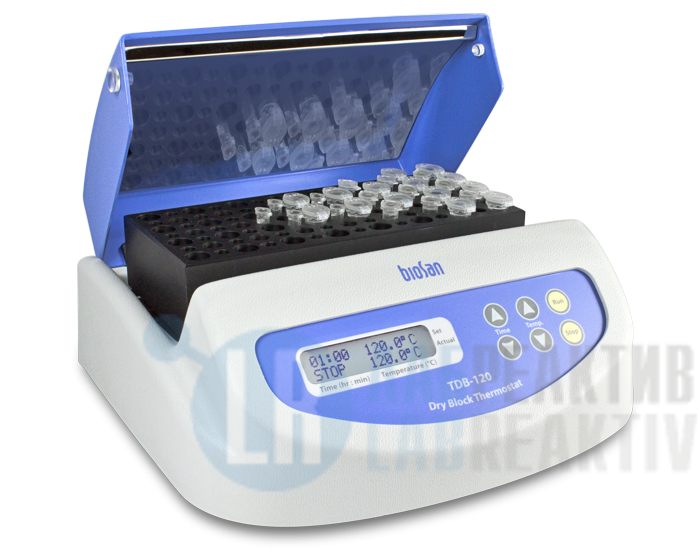 Термостат TDB-120 предназначен для поддержания постоянной температуры образцов в пробирках, помещенных в гнезда алюминиевого блока. Беспрецедентно высокая точность и равномерность температуры по блоку. Широко применяется при постановке ПЦР–анализа.
