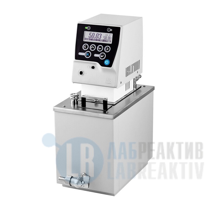 Термостат позволяет регулировать температуру как по одной из 3-х предварительно заданных уставок, так и по программе, состоящей из 10-ти температурно-временных интервалов с регулируемой скоростью нагрева или охлаждения теплоносителя.