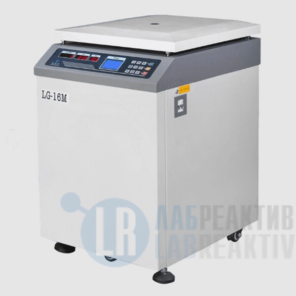 LG-16M вращается со скоростью до 16000 об/мин, роторы с фиксированным углом на пробирки объемом 1,5–500 мл, поворотные роторы на пробирки объемом 750 мл. Точность температуры ± 1°С, 40 скоростей ускорения/замедления, 12 программ, определяемых пользователем, автоматическая блокировка ротора.