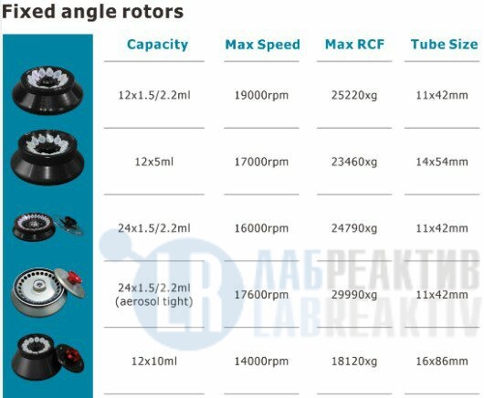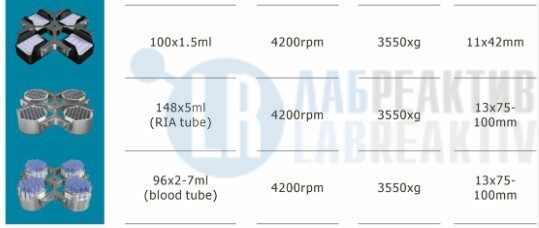 TGL-19 представляет собой охлаждающую универсальную центрифугу с поворотными роторами и роторами с фиксированным углом. Она совместима с пробирками/бутылками объемом от 0,2 до 500 мл, пробирками для крови и 96-луночными планшетами. Диапазон температур от -20°С до +40°С.