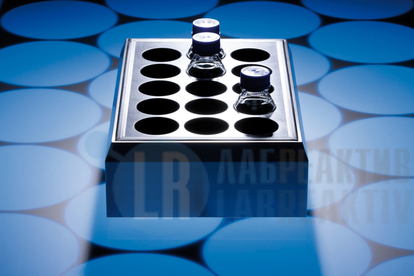 Комбинация блока нагревания с перемешиванием с 15 точками перемешивания, 15 отверстий, ø 71,5 мм, глубиной 78 мм, расстоянием 84 мм, подходит для лабораторных колб на 250 мл (например, Шотта) и для стаканов на 400 мл (высокая форма).