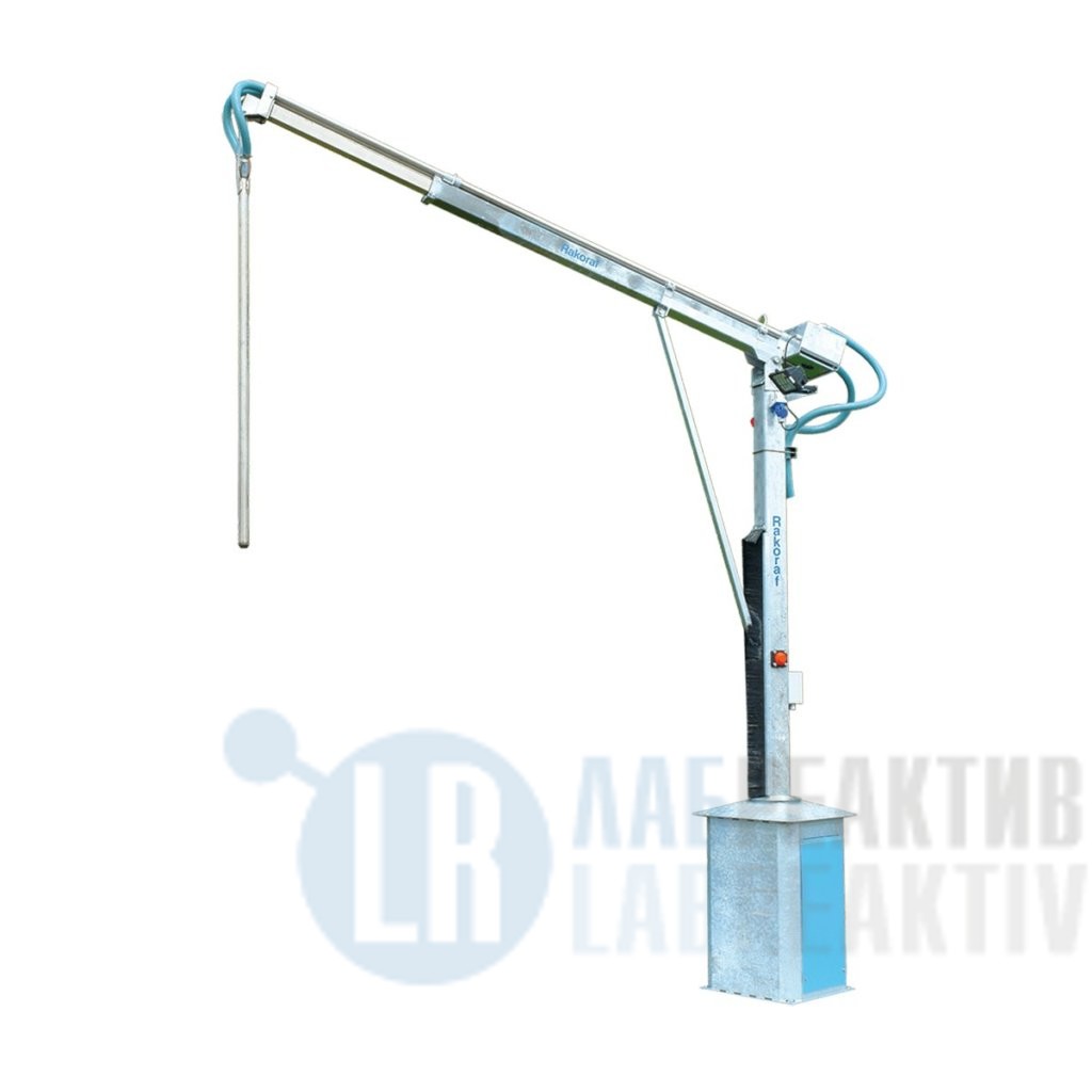 Электромеханический пробоотборник Rakoraf обеспечивает быстрый и легкий способ достоверного отбора пробы из открытого автотранспорта, предназначенного для перевозки зерновых. Телескопическая горизонтальная часть пробоотборника (длина 2,40 м) с зондом выдвигается на длину до 4,40 м, поворачивается в горизонтальной плоскости от 0 до 350º, осуществляет движение по вертикали.