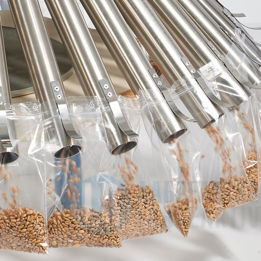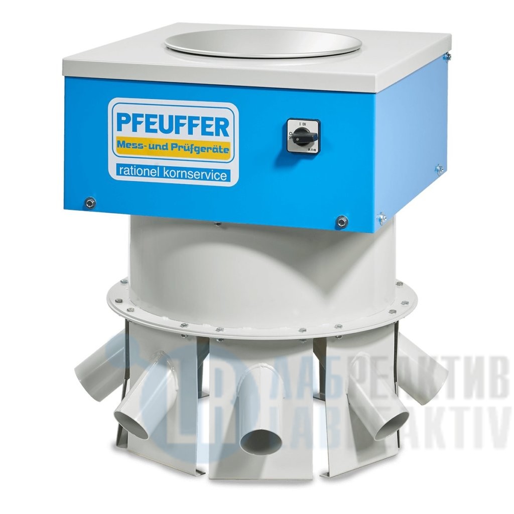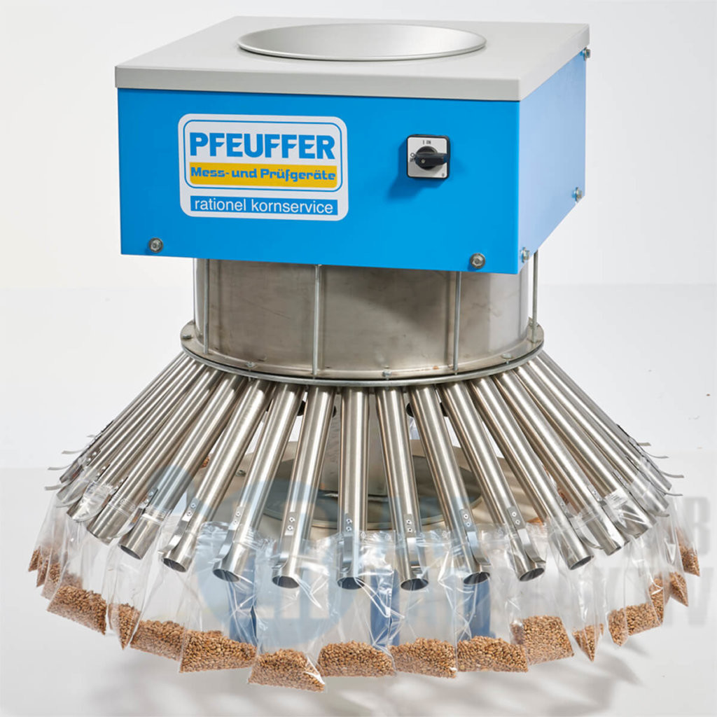 Включите делитель проб и загрузите пробу в приёмную воронку. Поворотная труба распределяет пробу по 8 или 32 выходным отверстиям для проб. Проба распределяется полностью, поэтому не остаётся избыточного количества. В связи с большим количеством перекрытых отверстий во время прохождения пробы делитель проб обеспечивает очень хорошее статистическое распределение различных компонентов пробы.