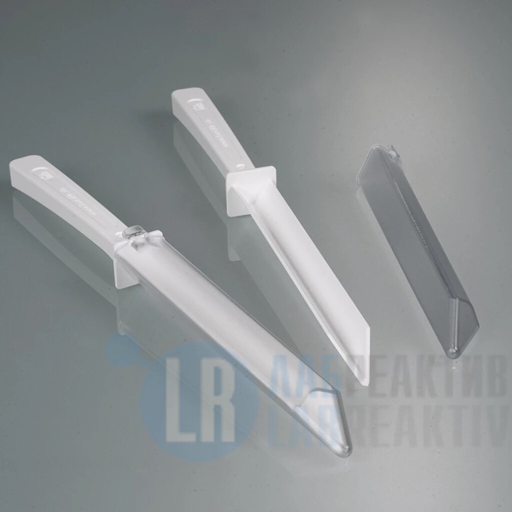 Шпатель с прозрачным футляром можно закрыть сразу же после отбора проверяемого материала, защищая тем самым взятую пробу от внешних загрязнений.