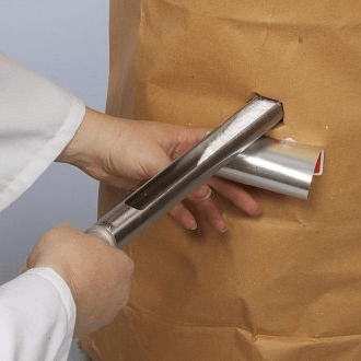 Приемник вводят в мешок или бак, образец извлекают с помощью пикообразной трубки с полукруглым сечением.