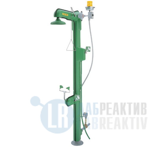 Головка: две запатентованные Feather-Flo головки для промывки лица и глаз, выполненные из ABS пластика, пылезащитные колпачки откидываются под напором воды (Модель SP21).