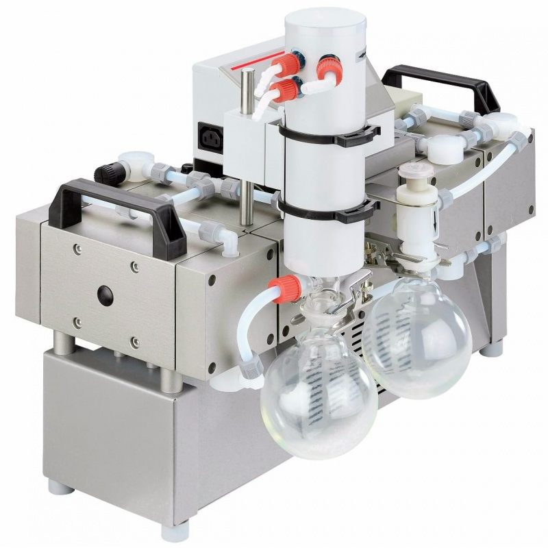 Помимо отдельных мембранных насосов, компания Welch также предлагает мембранные вакуумные системы, предназначенные для перегонки/испарения растворителей. Они включают в себя химически стойкий безмасляный мембранный насос (MPC) с дополнительными пакетами управления, ловушкой жидкости на входе и холодильником для выхлопных паров. Все детали, контактирующие с парами, изготовлены из высококачественных химически стойких материалов, а стеклянные детали имеют прозрачное пластиковое покрытие, что позволяет перекачивать пары растворителей и кислот.