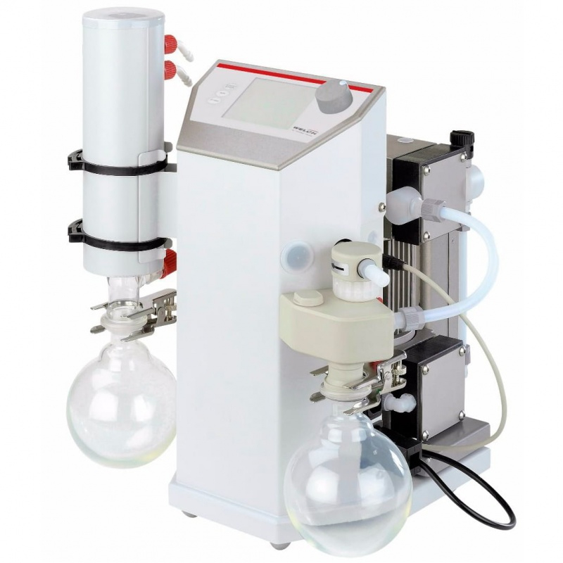 Помимо отдельных мембранных насосов, компания Welch также предлагает мембранные вакуумные системы, предназначенные для перегонки/испарения растворителей. Они включают в себя химически стойкий безмасляный мембранный насос (MPC) с дополнительными пакетами управления, ловушкой жидкости на входе и холодильником для выхлопных паров. Все детали, контактирующие с парами, изготовлены из высококачественных химически стойких материалов, а стеклянные детали имеют прозрачное пластиковое покрытие, что позволяет перекачивать пары растворителей и кислот.