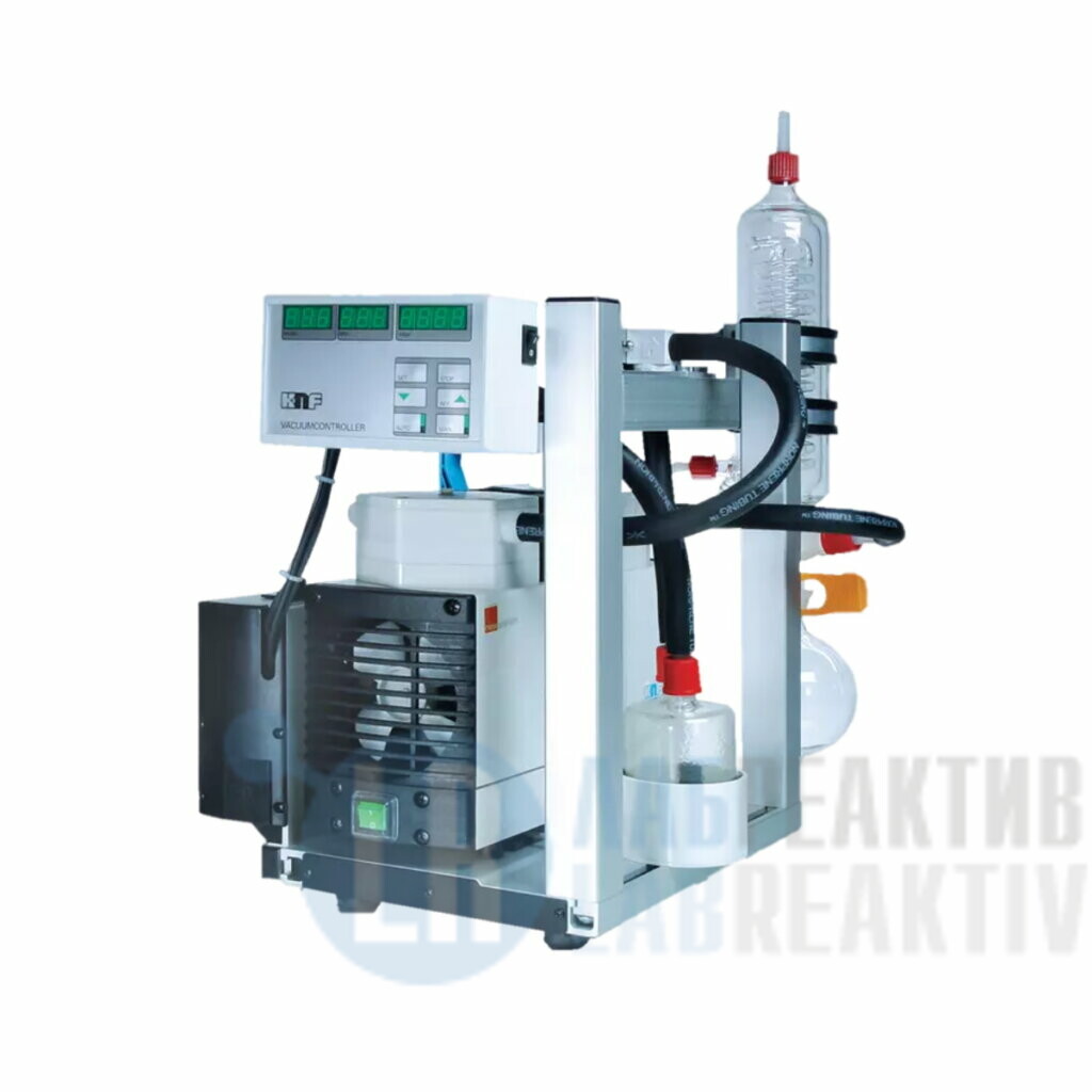 Полная вакуумная система с химически стойким мембранным насосом, входным сепаратором, конденсатором и двухпозиционным регулятором вакуума. Идеально подходит для роторного испарения и других применений, где важен контроль уровня вакуума.