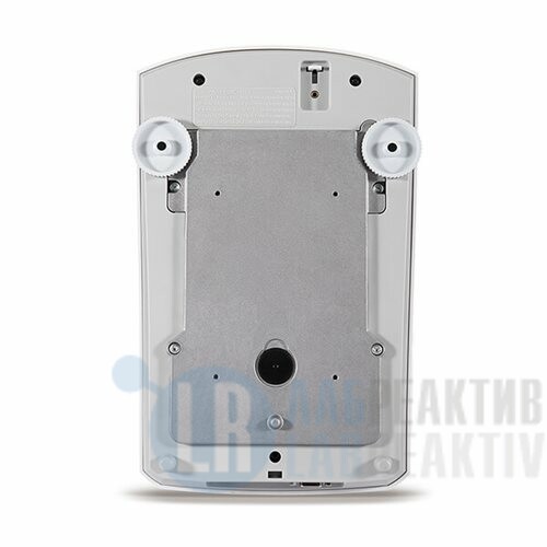 Верхняя часть корпуса из пластика АБС, съемная грузоприемная платформа из нержавеющей стали, съемный стеклянный защитный кожух со сдвижной верхней дверцей, крюк для взвешивания под весами, скоба для противоугонного замка, блокировка калибровки.