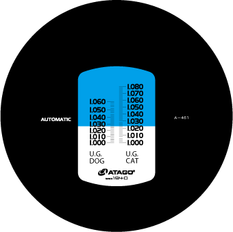 Имеет три шкалы: для определения сывороточного белка (Serum protein) в крови, относительной плотности мочи для кошек (Urine S.G. Cat) и собак (Urine S.G. Dog). Модель выполнена из пластика для лучшей устойчивости к агрессивным средам. Модель MASTER-VET оснащена функцией автоматической температурной компенсации (ATC) и защитой от проникновения воды и пыли (класс защиты IP65). Калибровка производится чистой (дистиллированной) водой или калибровочным раствором «Сахарозка» 10%.